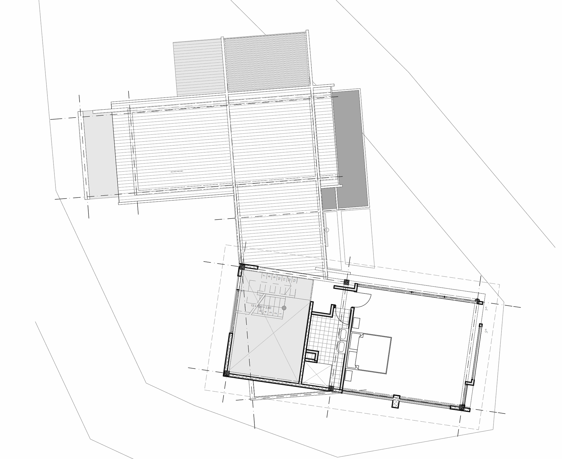 La geometría de la casa crea un espacio para estar afuera, la casa funciona como una barrera a las fuertes ráfagas de viento que vienen del pacifico y se enfrían al encontrarse con la cordillera. Este afuera, es quizás el lugar mas importante de la casa.